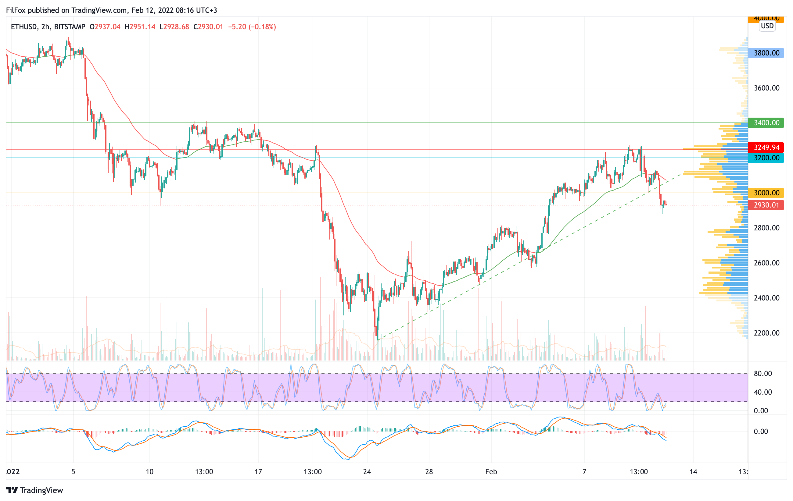 Вчера в течение дня покупатели не смогли закрепиться выше уровня средних цен. Вечером давление медведей усилилось и цена Ethereum просела к психологической отметке 3000.00 USD.