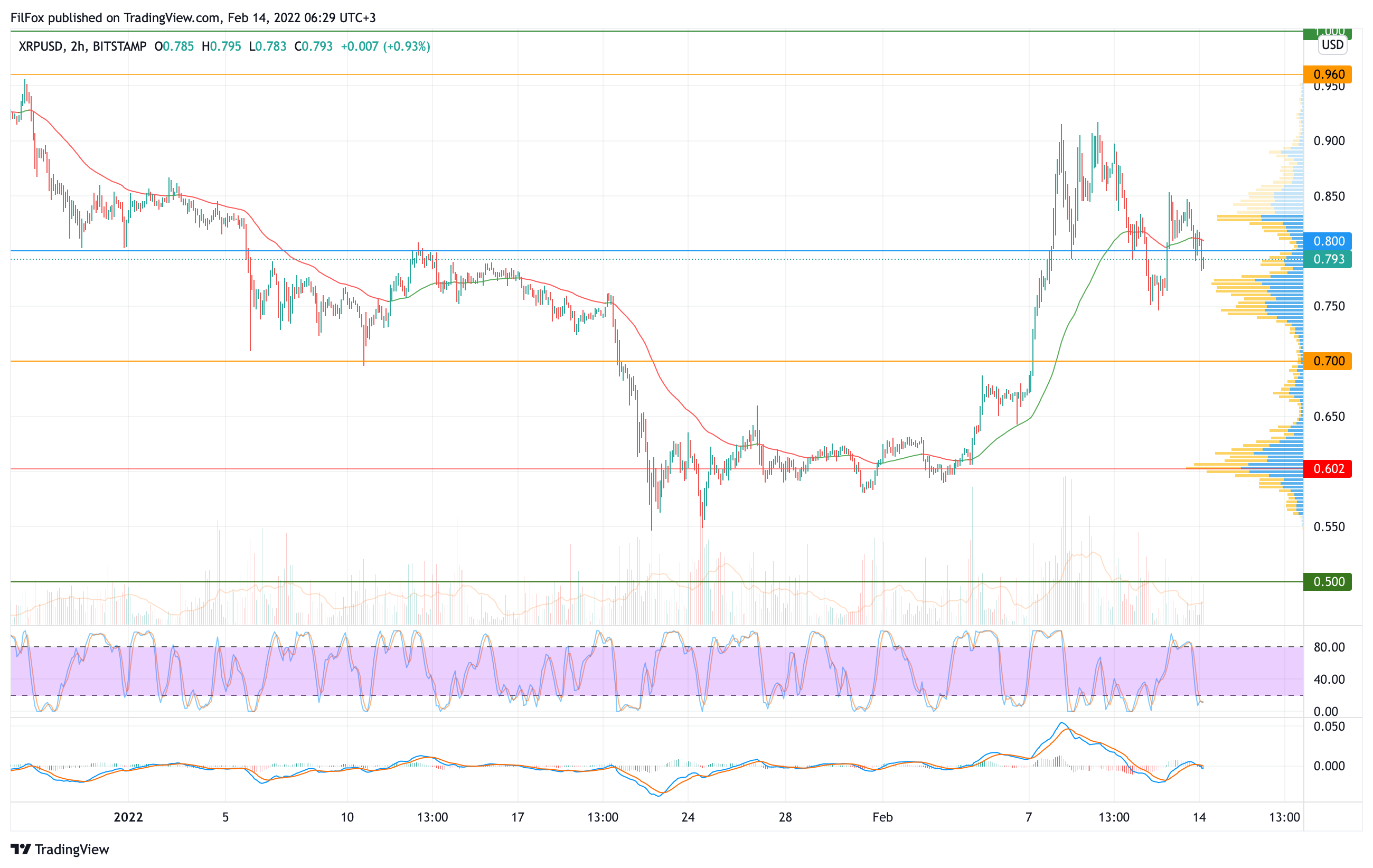 В прошедшую субботу поддержка на уровне 0.750 USD удержала цену XRP от снижения и покупатели на мелких объёмах попытались закрепиться выше уровня средних цен.