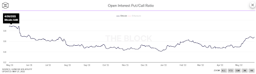 Можем заметить, что показатель Put - Call ratio достиг почти максимальной отметки за 2022 год, что может говорить о стремлении рынка хеджировать дальнейший риск снижения, что неудивительно. Но если мы рассмотрим предыдущий пик от февраля 2022, то можем предполагать коррекционное движение как минимум к уровням сопротивления $30 600, $31 400.