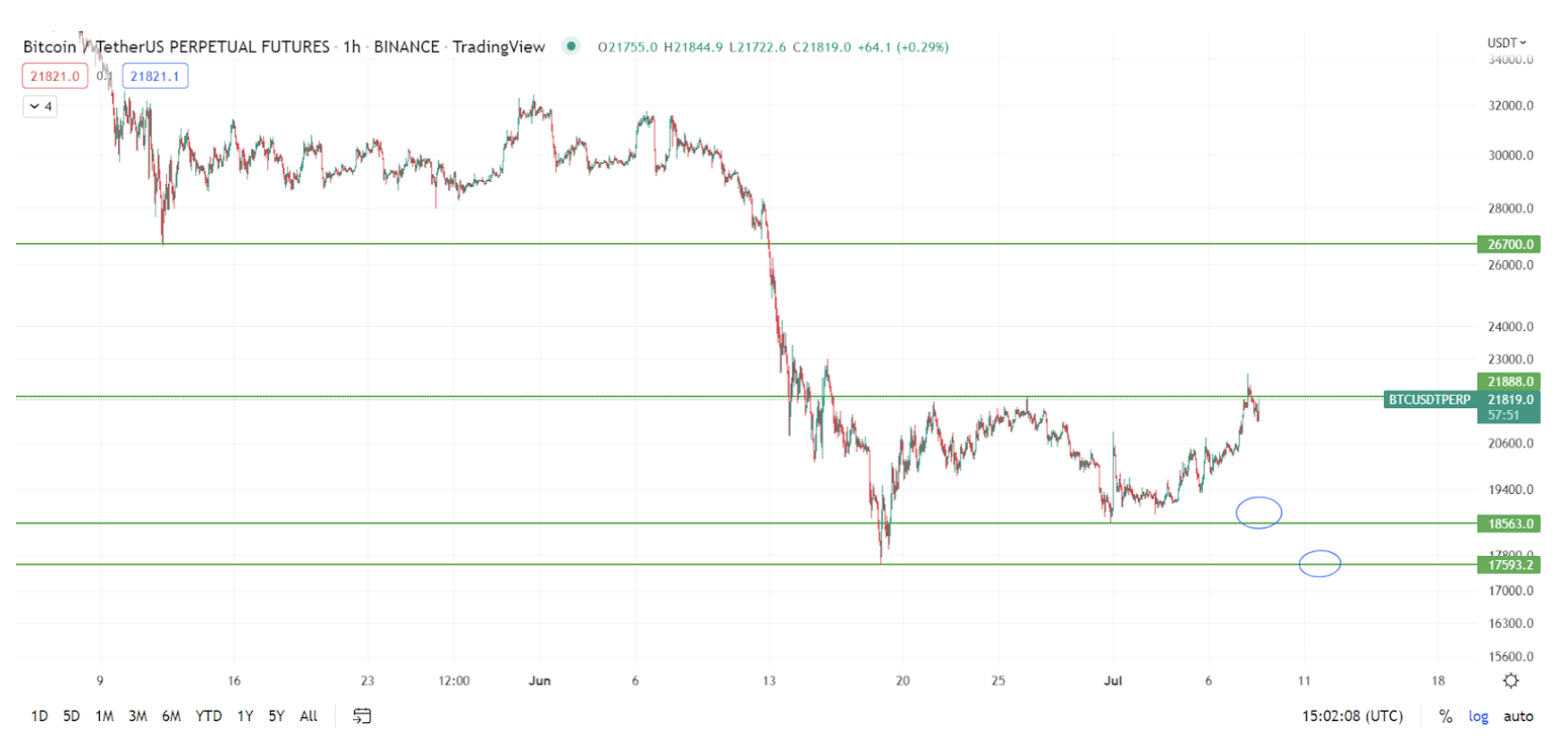 Сценарий 2: закрепление над $21 800 и поход к $26 700.