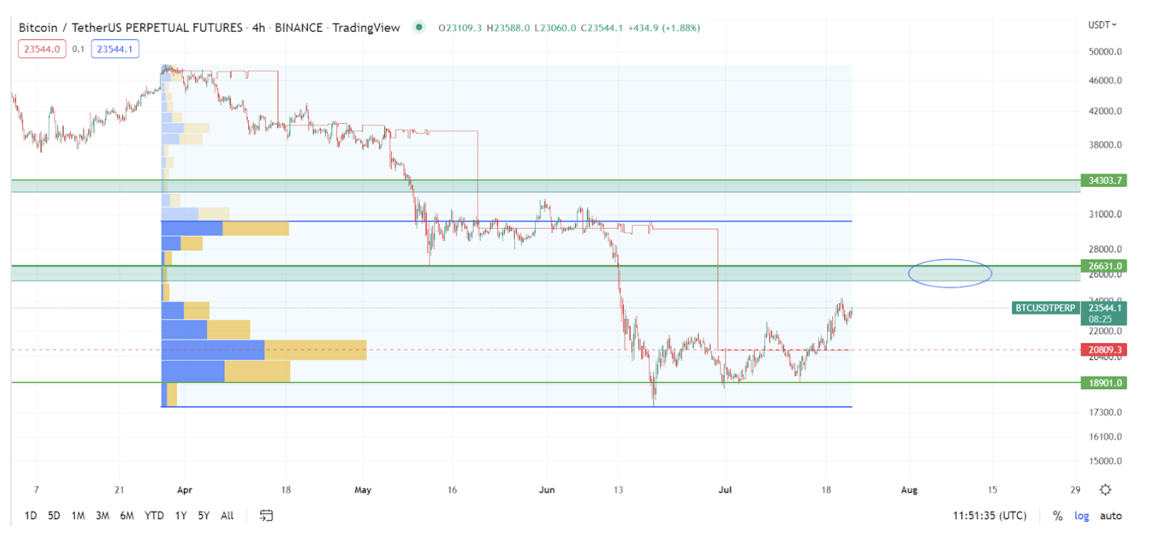 Ожидания рынка нацелены на публикацию новых ставок на следующей неделе, 27 июля. Большинство склоняется к повышению процентной ставки ФРС на 75bps. Хотя, после выхода новости о инфляции в 9.1% многие поговаривали и о 100bps.