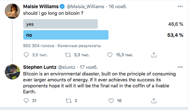 Некоторые пользователи Twitter считают, что биткоин - это «безумное вложение» и они не советуют звезде рисковать своими деньгами.