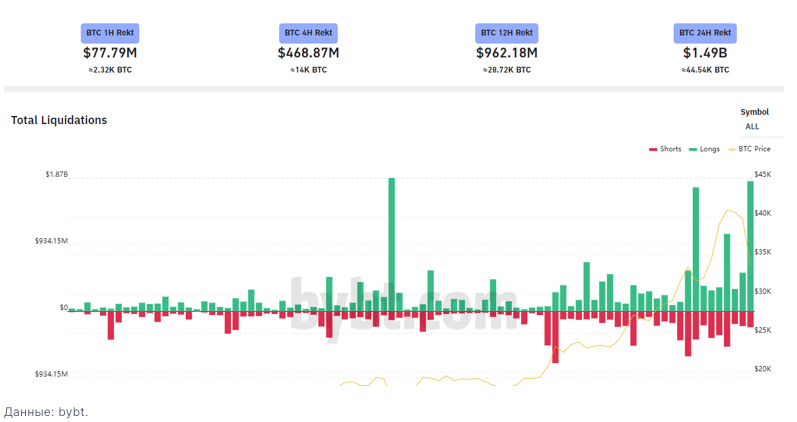 На фоне падения рынок деривативов ликвидировал длинных позиций трейдеров на $1,49 млрд.