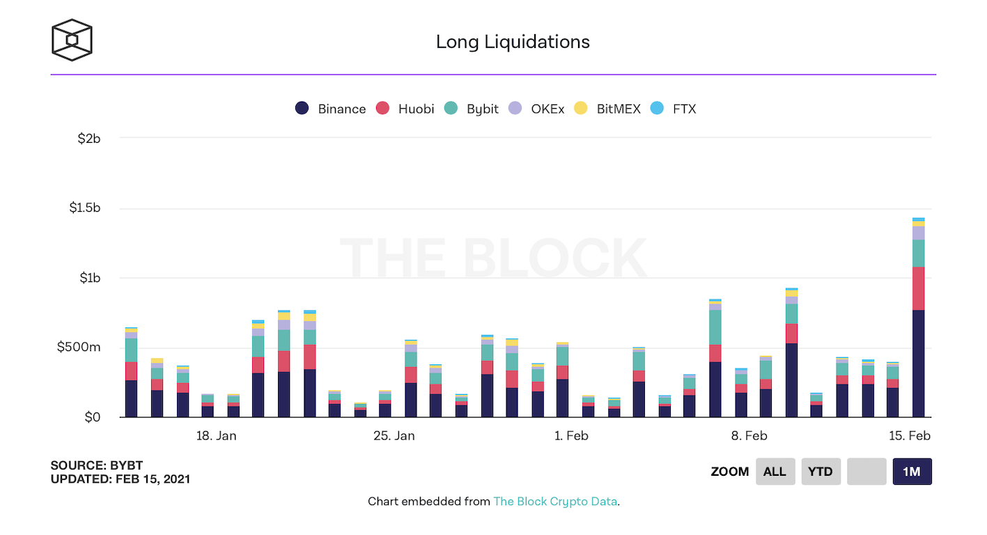 Последствия падения до локального минимума в $45,768 сильнее всего сказались на рынке фьючерсов. Согласно данным bybt, за последние 24 часа биржи ликвидировали позиций трейдеров на более $1,87 миллиардов.