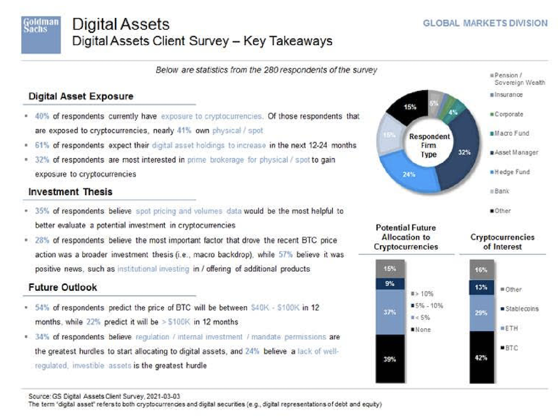 Согласно результатам опроса Goldman Sachs, инвесторы ожидают от биткоина дальнейшего роста.