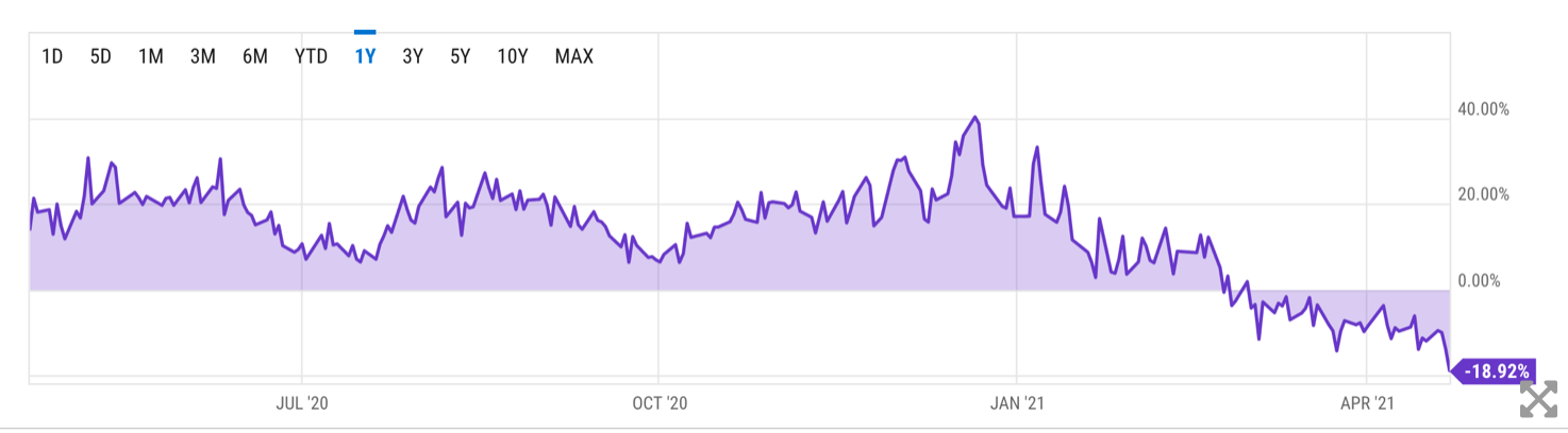Премия на GBTC упала до -18,92%. Это означает, что цена GBTC примерно на 19% меньше, чем цена чистых активов (Net Assets Value или NAV). Это самый низкий показатель за все время существования траста.