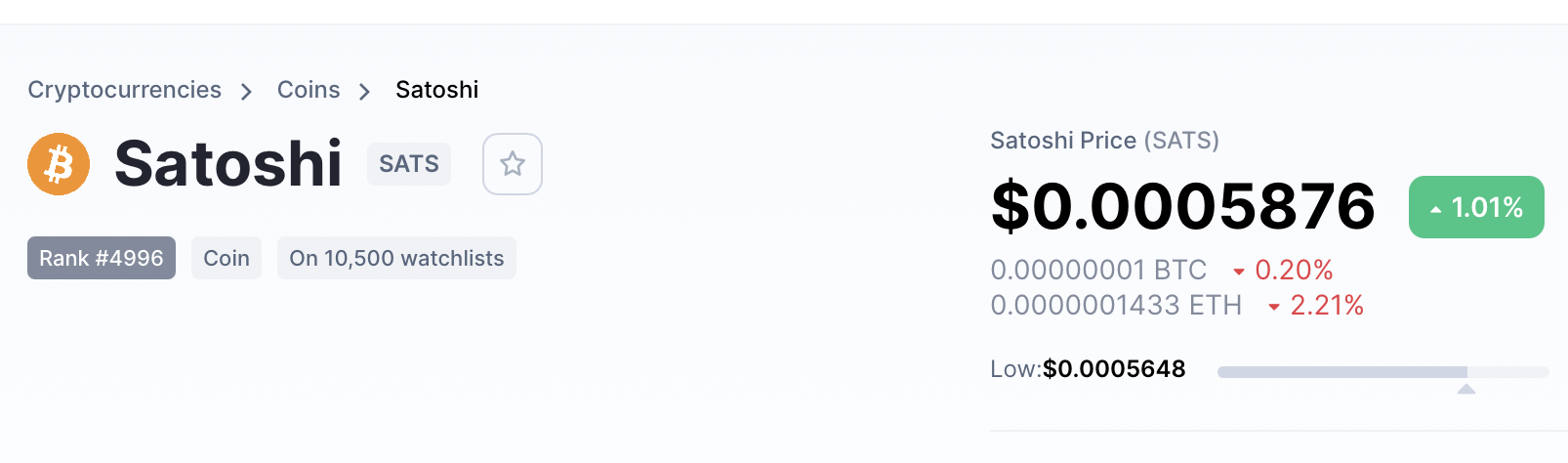 Сервис Coinmarketcap уже добавил сатоши (SATS) в свой листинг.