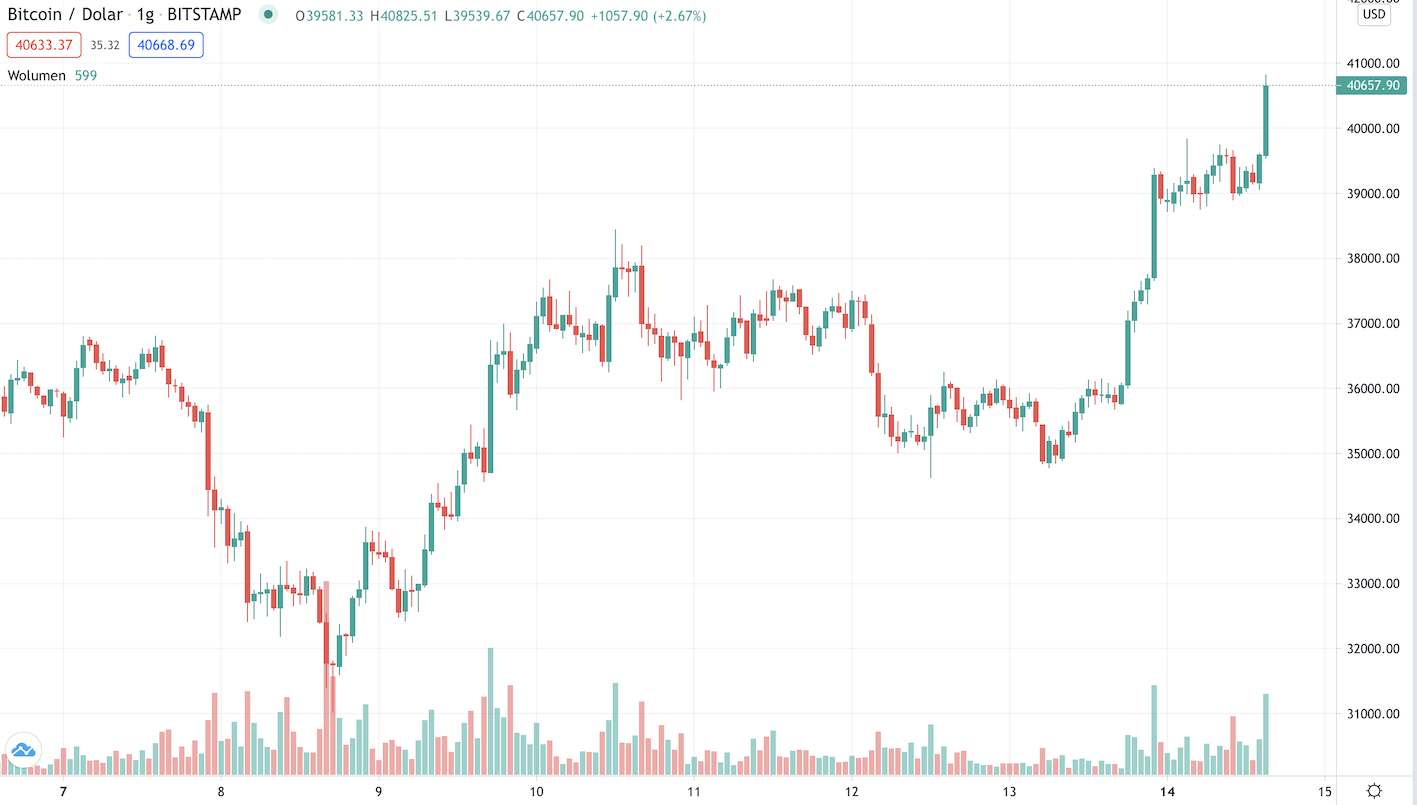 14 июня цена биткоина вновь пробила $40,000 после длительной консолидации около $35,000.