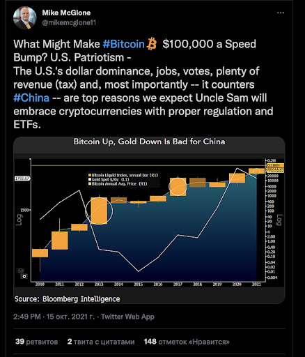 Наиболее близким является важный психологический уровень в 70 000 долларов, однако самым значимым остаётся отметка в 100 000 долларов. Инвесторы не исключают, продолжения роста этого актива вплоть до этого уровня. С таким мнением выступает, например, главный стратег Bloomberg по сырьевым товарам Майк МакГлоун.