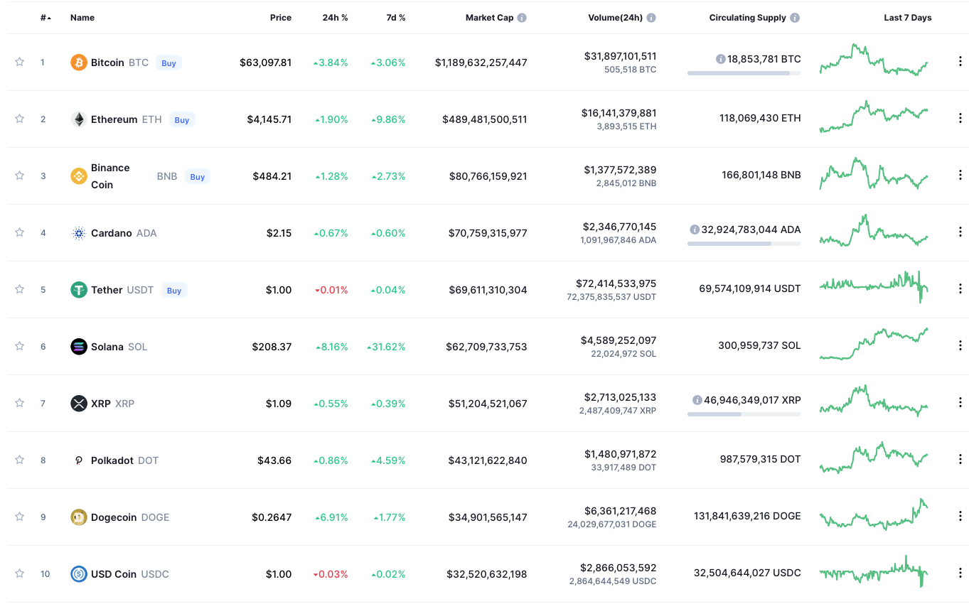 Криптовалютный рынок предлагает 13,072 цифровых монет, по данным Coinmarketcap. Такое количество монет и бычий тренд рынка приближает капитализацию к максимальным значениям.