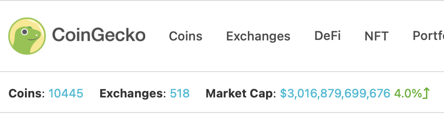 Теперь, согласно информации CoinGecko, общая капитализация криптовалютного рынка превышает $3 триллиона.