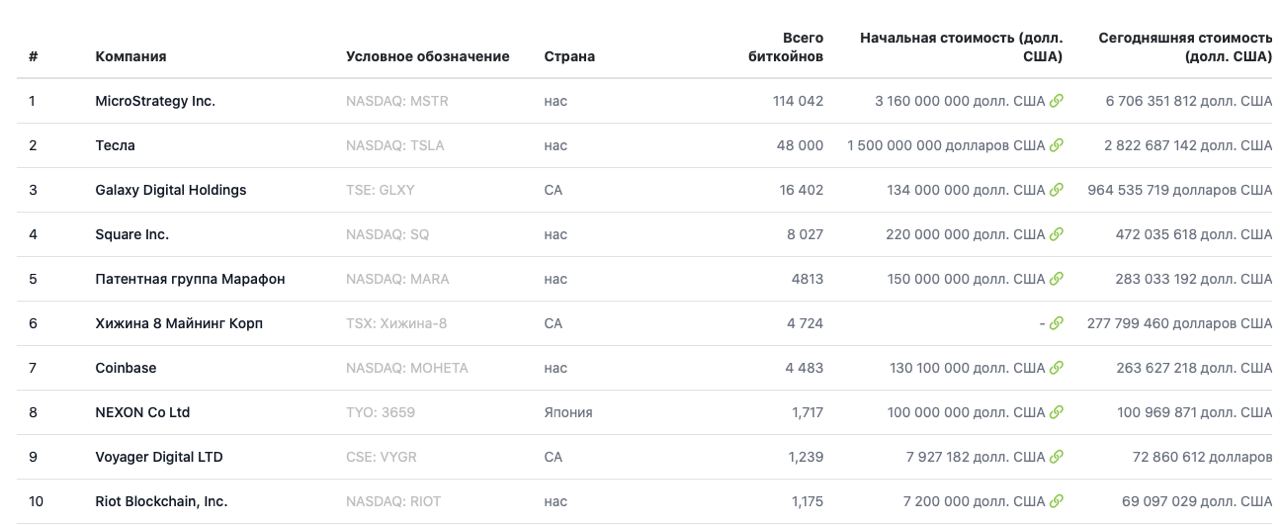 На данный момент MicroStartegy имеет самый большой резерв биткоина среди частных компаний и возглавляет список биткоин-холдингов.