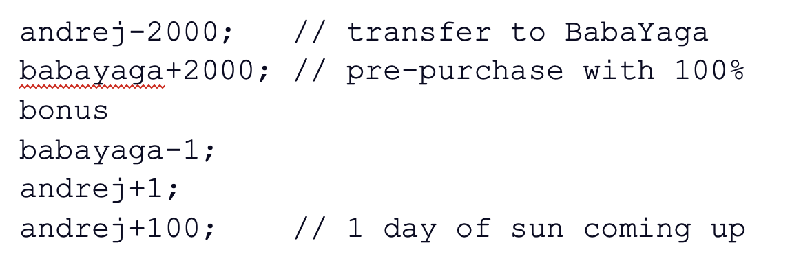 {"from":"babayaga","to":"andrej","value":1,"data":""}