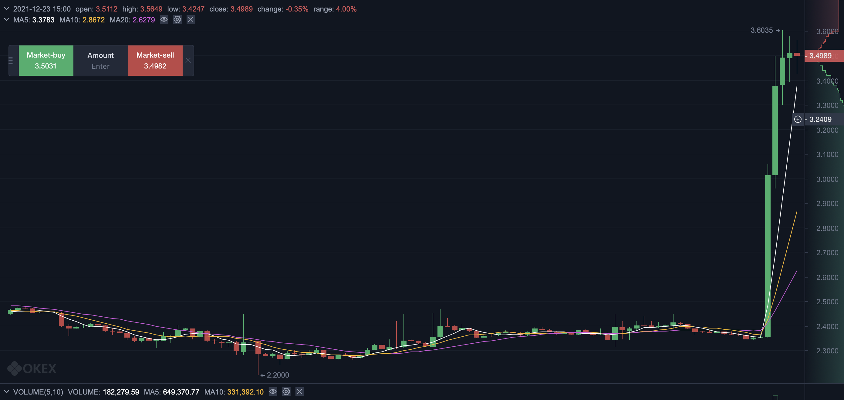После публикации курс Toncoin взлетел на 45% за несколько часов, установив локальный максимум около $3.60.