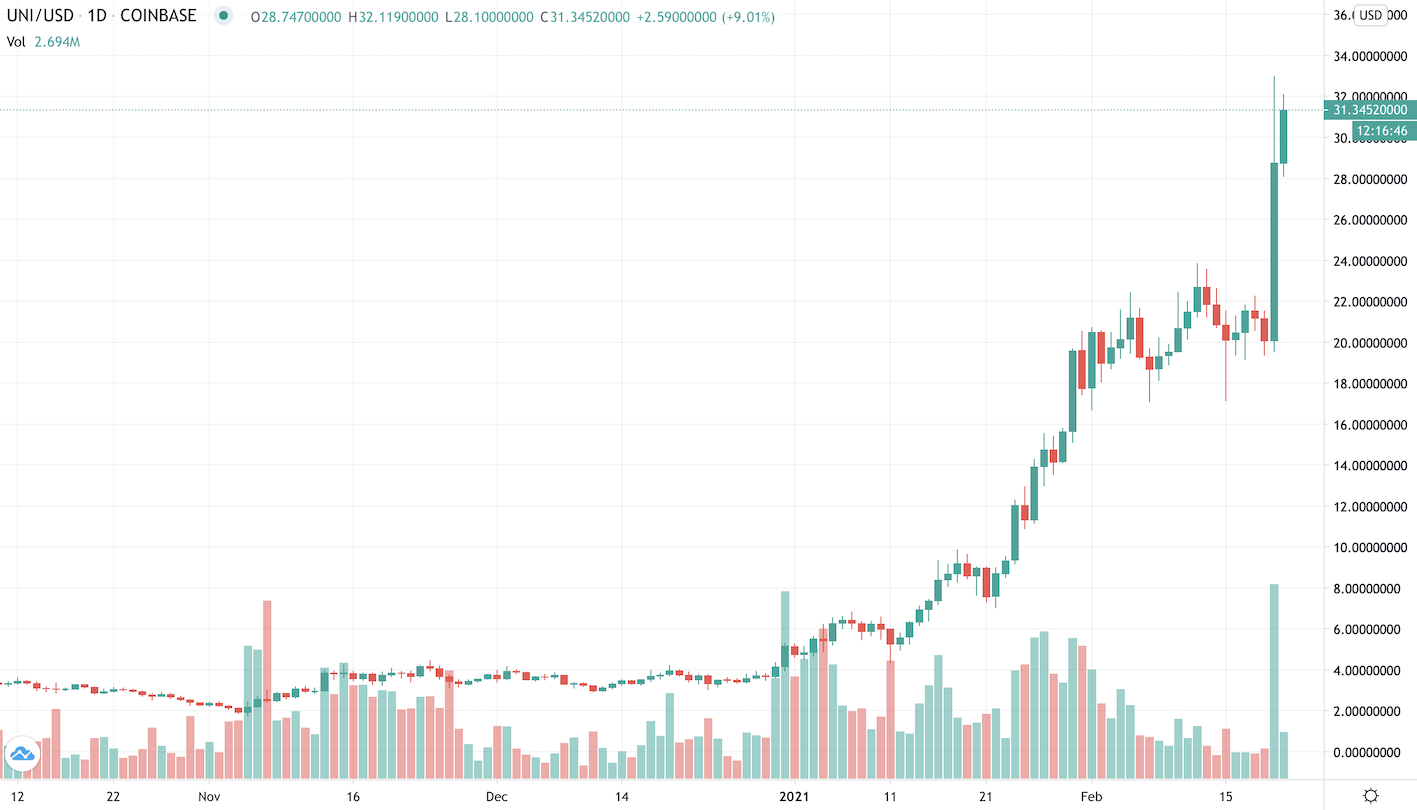 На момент написания UNI торгуется около $30. Это означает, что сегодня 400 UNI можно продать за $12,000.