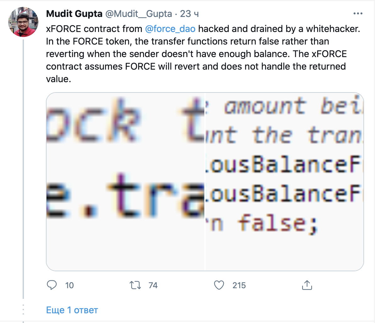 После анализа адресов выяснилось, что один хакер сразу же вернул украденные 15,8 млн FORCE в пул. Второй вывел 298 000 FORCE и обменял их на 42 ETH. Третий украл 4,1 млн FORCE, получив 80 ETH. Добыча хакеров составила около $376,000.