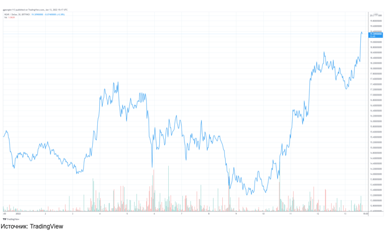Цена продажи токенов NEAR не раскрывается. На фоне новостей об успешном закрытии раунда, NEAR резко пошел вверх, и уже торгуется около $20. NEAR прибавил 110% за последний месяц, и 30% за последнюю неделю, войдя в топ-20 по капитализации. На фоне привлечения миллионов, монета увеличила капитализацию до $11,7 млрд.