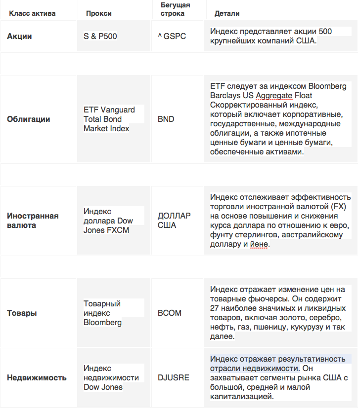 Чтобы быть достаточно диверсифицированным, вы должны быть представлены в каждой из основных инвестиционных категорий.