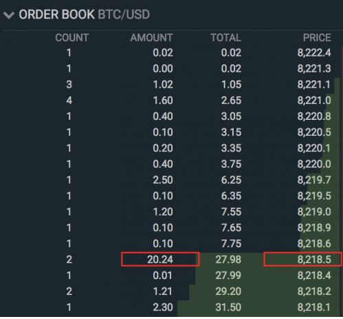 Рассмотрим биржевой стакан BTC / USD от одной из крупнейших криптобирж Bitfinex.