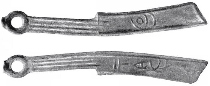 Ножи использовались в качестве денег несколько сотен лет, пока китайский император Цинь Шихуанди не отменил эту «валюту» и ввел в качестве законного средства платежа круглые монетки с квадратным отверстием посредине.