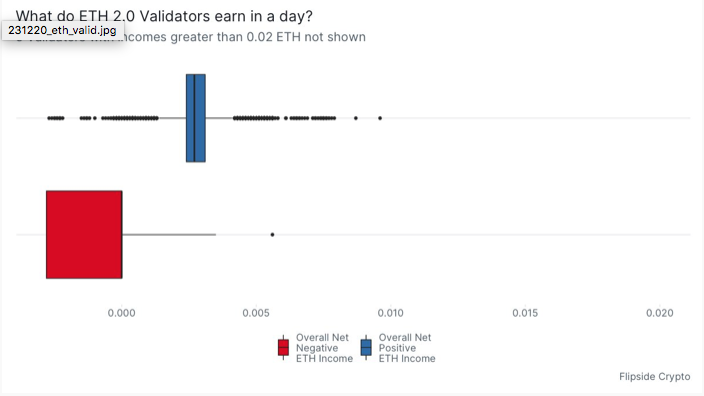 По данным компании по бизнес-аналитике Flipside Crypto, каждый валидатор зарабатывает 0,002792 ЕТН в день. Это примерно 1,69 доллара по текущей рыночной цене.