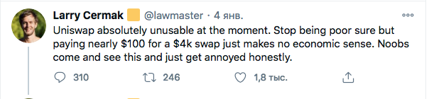 Рост цен на комиссии делает использование проектов DeFi, таких как Uniswap, чрезмерно дорогим и неэффективным.