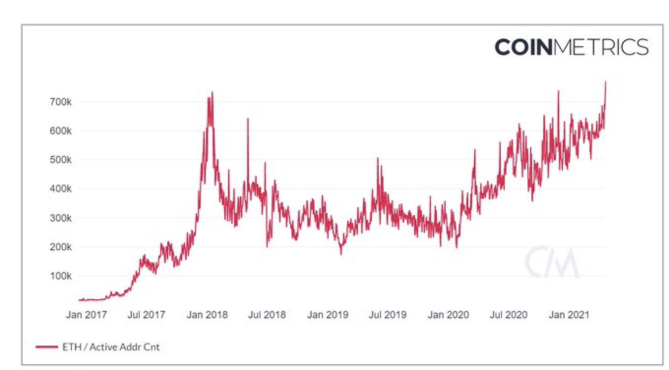 Вторая по величине криптовалюта недавно достигла нового ценового рекорда. Вслед за этим количество активных адресов в сети Ethereum также установило новый максимум.