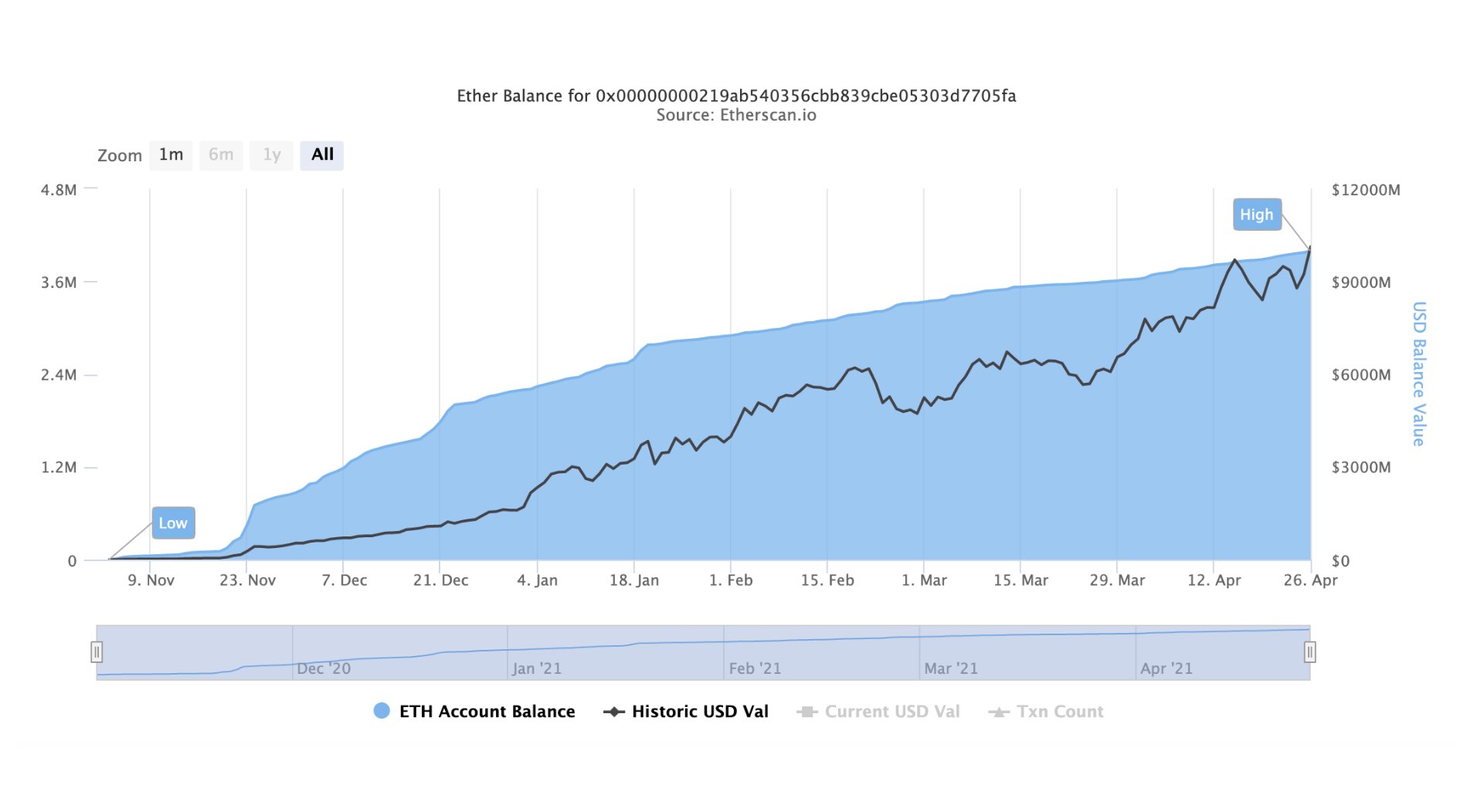 Сегодня депозитный контракт ETH 2.0 пробил отметку в $10 миллиардов. Для стейкинга заблокировано около 4 миллионов ETH.