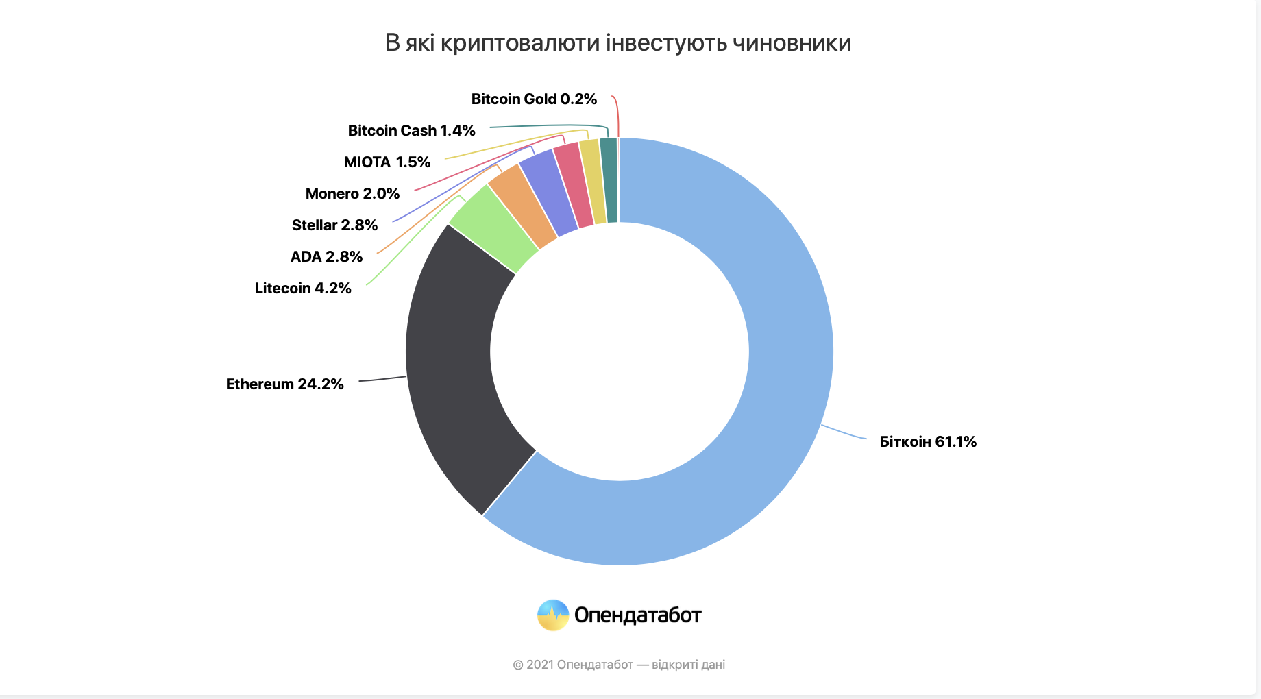 Госслужащие предпочитают инвестировать в биткоин, Ethereum и Litecoin.