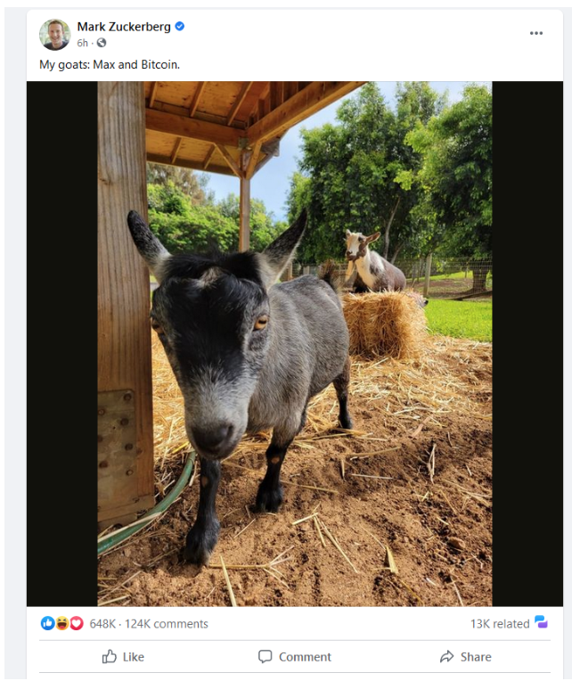 Марк Цукерберг завел домашних козлов. Он назвал их «Макс» и «Биткоин». Сообщество предполагает, что за этим скрывается намек на что-то большее.