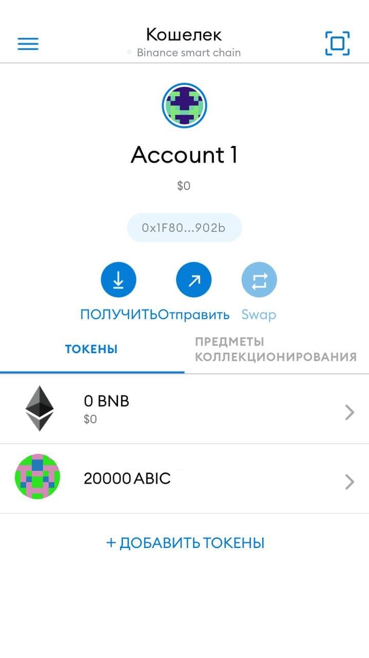 Затем бот педантично поможет настроить вам программный кошелек Metamask для приема токенов ABIC. Это занимает всего 5 минут, но без детальной инструкции от помощника настройка может показаться непростой даже для опытных крипто-инвесторов. После установки и настройки в Metamask на главном экране в сети Binance Smart Chain появляется токен ABIC. Теперь осталось только произвести оплату.
