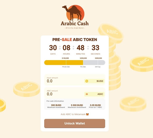 В начале июня стартовал Третий и финальный раунд Приватных торгов и Arabic Cash приготовил для новых инвесторов более мягкие условия входа. На фоне глобальной коррекции рынка порог снизился до $300. Всего в последнем этапе будет продано порядка 1,000,000 токенов ABIC. Покупка осуществляется автоматически на официальном PRE-SALE сайте https://arabic.cash с помощью BUSD или USDT через подключенный кошелек Metamask или Trust Wallet.