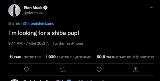 Поводы для взлета рыночной цены Shiba Inu самые разнообразные: рост идет как на хайпе, так и на более фундаментальных факторах. Например, в мае токен резко подскочил после твита владельца Tesla и SpaceX миллиардера Илона Маска о том, что он присматривает щенкапороды шиба-ину. Пользователи восприняли это заявление как интерес Маска к SHIB.