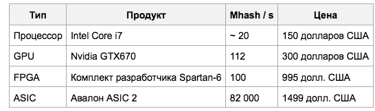Сегодня самостоятельная добыча биткоинов абсолютно не рентабельна. Трудно составить конкуренцию крупным дата-центрам. Но для наглядности приведем сравнительную таблицу несколько вариантов майнинга биткойнов: