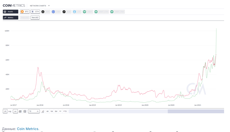 В последние дни майнеры Ethereum получают больше прибыли, чем биткоин-майнеры. Среднесуточный доход от добычи ЕТН достиг $103 млн.