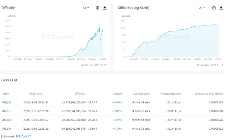 Согласно информации BTC.com, на этих выходных сложность добычи биткоина выросла на 4,69%, до 22,67 трлн хешей.