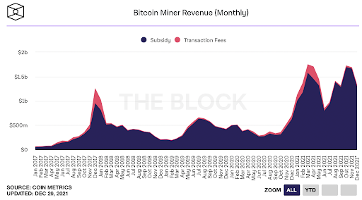 По подсчетам The Block Research, наилучшим месяцем для майнеров в 2021 году стал март, в этом месяце они смогли получить 1,75 млрд долларов. За год майнеры во всем мире заработали более 15 млрд долларов, и это почти в 4 раза больше, чем в предыдущем году.
