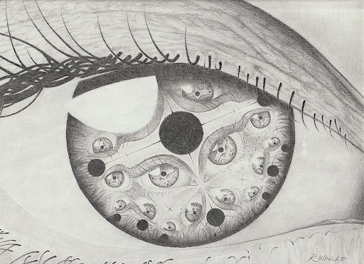 На картинке видим портрет мужчины. Мёртв ли он или же жив, who knows? Кресты на глазах намекают, что время паренька давно утекло, но вот третий глаз на лбу всё ещё наблюдает за происходящим вокруг. В любом случае, мы точно знаем, что человеком он был не самый хорошим.