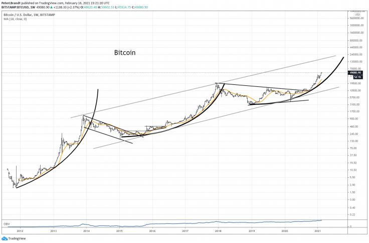 Брандт - аналитик с 45-летним опытом - отметил, что за десять лет биткоин совершил уже три параболических всплеска цены.