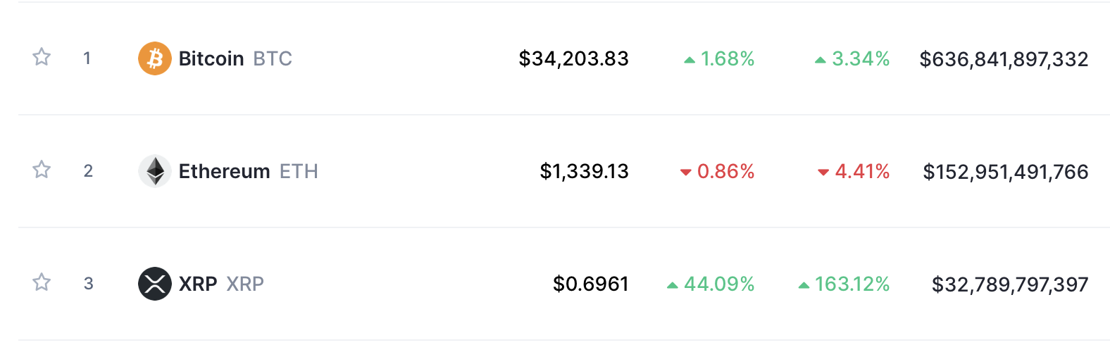 XRP снова на третьем месте Coinmarketcap