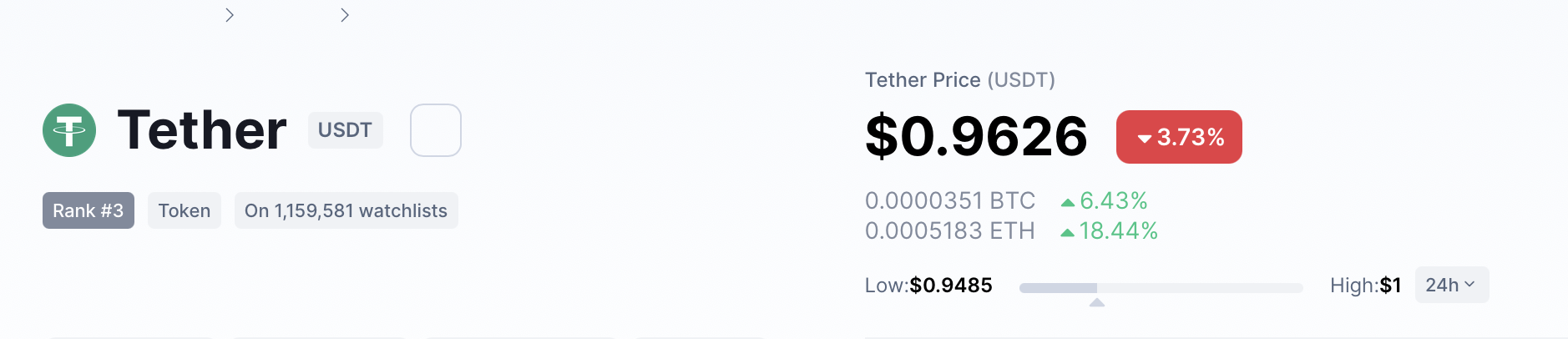 На момент написания USDT торгуется около $0,96.