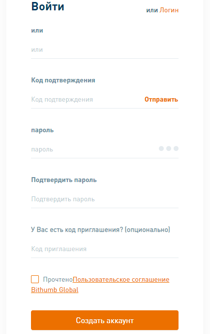 Шаг 1. Для начала, перейдите на сайт биржи Bithumb или скачайте официальное приложение для смартфонов на Android и iOS. Если у вас уже есть аккаунт, войдите в свою учетную запись. Если вы ранее не использовали биржу, необходимо пройти регистрацию.