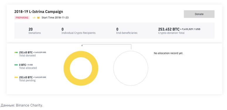 Согласно веб-сайту фонда Binance, из-за высокой волатильности стоимость обещанных в 2018 году сумм увеличилась до 9,6 миллионов долларов.