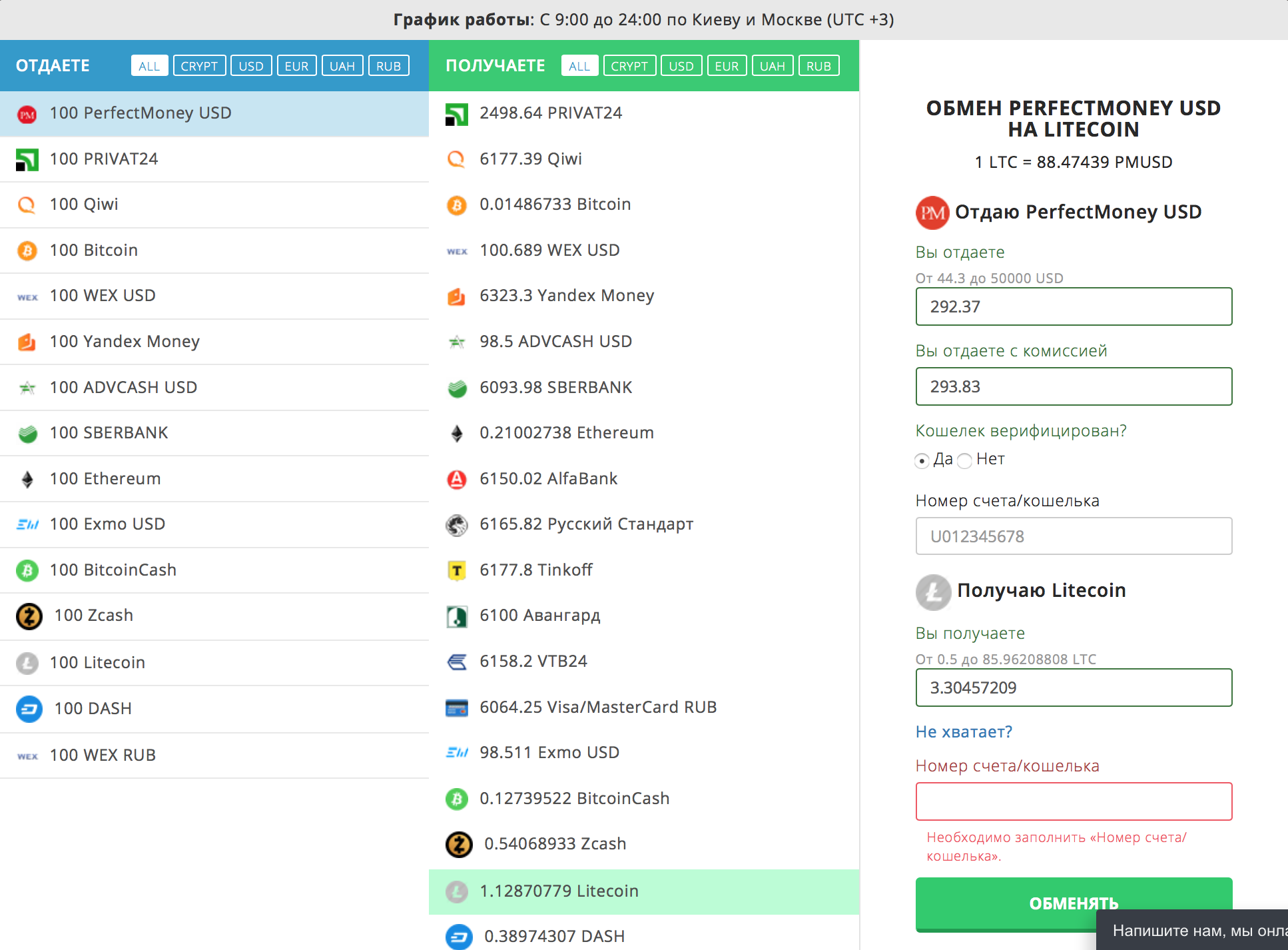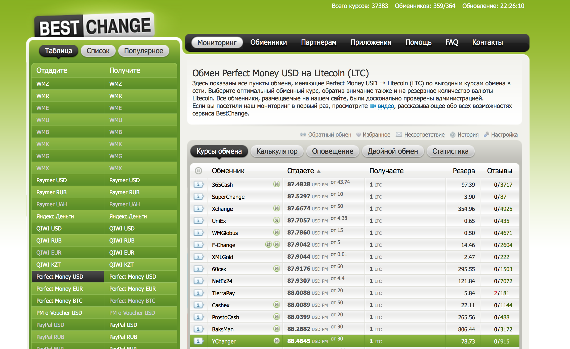 - Выбираем обменник с нормальной репутацией и резервом, который позволяет нам купить 3 LTC по наиболее выгодному курсу обмена. Конечно же, курс LTC в обменнике будет очень отличаться от биржевого за счет маржи и комиссии.